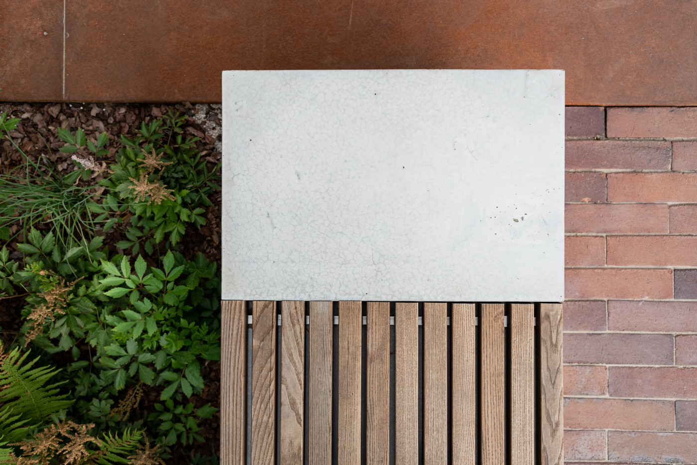 The technology of today makes it possible to create a fully grown garden. The use of large trees scales the space to a person and makes it possible to enjoy the result without having to wait for it. Bushes and grasses, planted in clusters, will let the residents fully experience the dynamics of the seasons and watch the colors and scents of nature change. They can even hear the local birds sing in the morning.